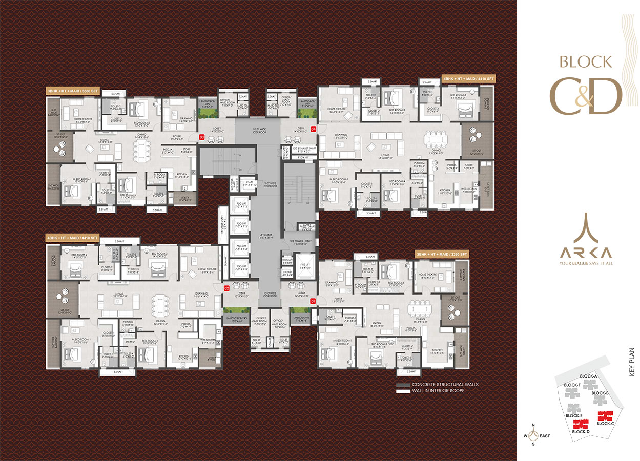 Arka Residences presents the well-designed spacious floor plans of 3 & 4 BHK apartments in the Khajaguda district. This remarkable project with 6 towers with 43 floors offering roomy home units with an open layout and finely divided balconies.