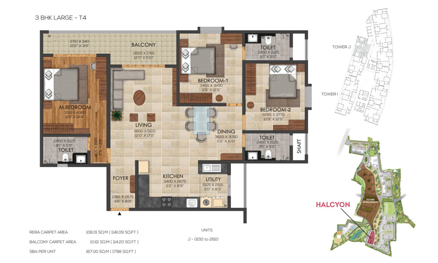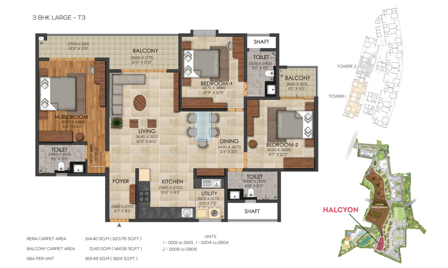Brigade Halcyon offers floor plan of 3 bedroom apartments.