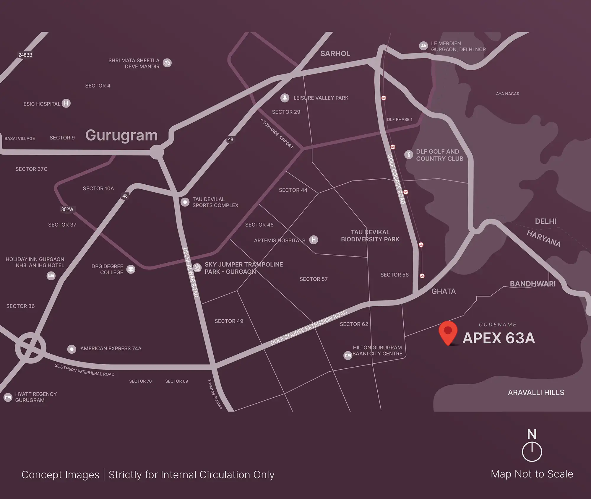 The architectural history of the Apex 63A is flourishing within the spirit of modernism, where the large residential buildings are matched with the empty horizons. It covers an area of around 12 acres, where Phase I consists of 4.96 acres and it has 02 iconic towers of up to 42 stories, overrun by three levels of basement and one ground floor. The project has only four houses per floor thus providing exclusivity and privacy thus providing intimate living experience in the midst of a huge city environment. All the homes are designed with great attention to provide spacious living areas, oceans of natural light, seamless connection of indoors and outdoors so that residents can experience magnificent views of the Aravalli scenario.